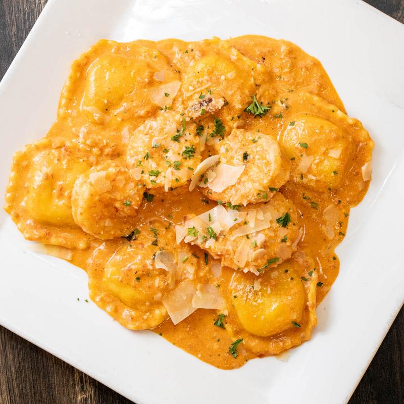 Half $45.00 | Full $75.00 • Vegetables, pink cream sauce.